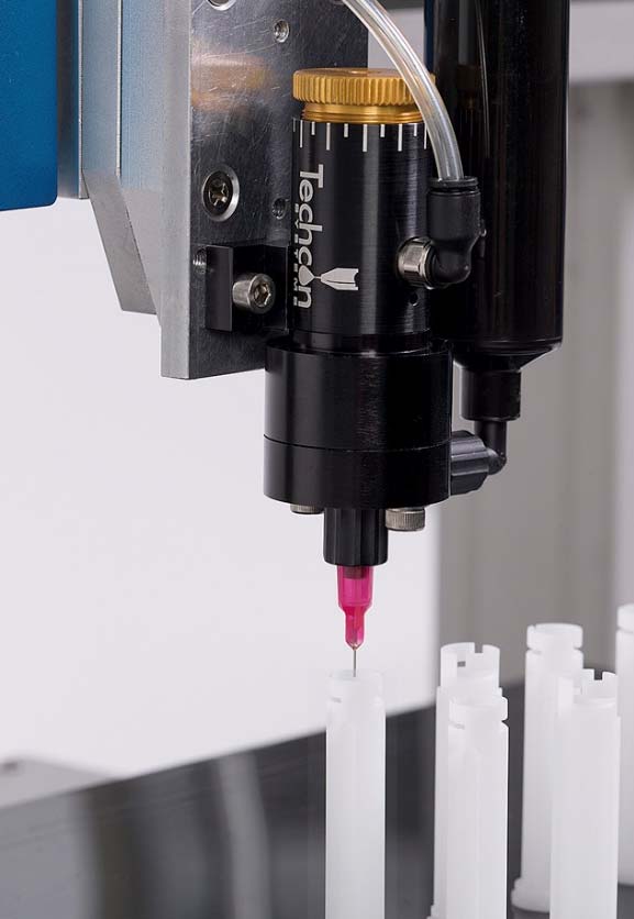 The TS5624 dispenses low to medium viscosity fluids over a wide range of shot and bead sizes, down to a fraction of a micro liter. An internal spring return makes the valves fully adaptable for use with Techcon Systems controllers. A short opening stroke provides an extremely fast and positive shut-off.